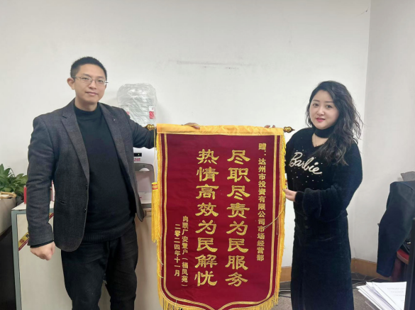 11月19日,原肉聯(lián)廠安置房住戶將一面寫著“盡職盡責(zé)為民服務(wù) 熱情高效為民解憂”的錦旗送到市投資公司,感謝公司圓了他們17年的“安居夢(mèng)”。